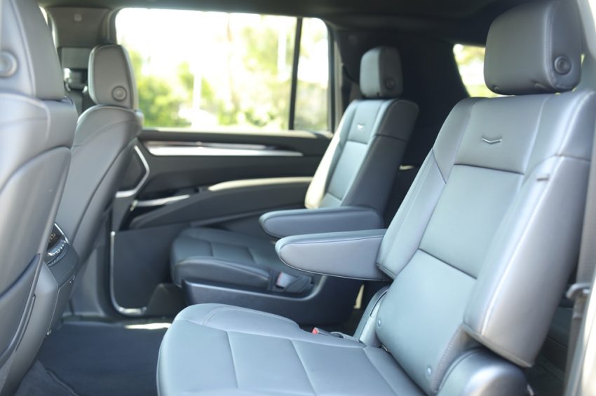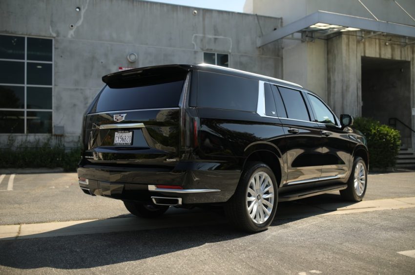 The Black Cadillac Escalade offers generous cargo space behind the rear rows, which makes it useful for airport runs, shopping trips, and weekend getaways.